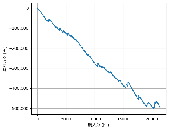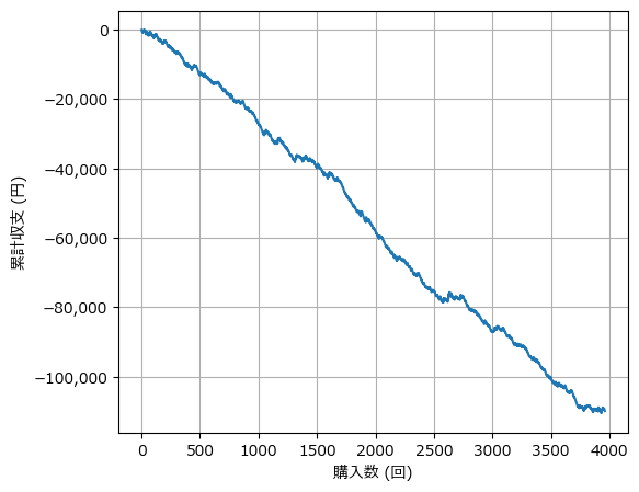結果はご覧の通り。 貯金を取り崩すように、資金はどんどん減っていきます。最終的な回収率は80%。「的中」の快感は得られても、「利益」を出すのは1番人気だけでは不可能だということが、数字ではっきりわかります。(ある意味、控除率通りの結果です。)