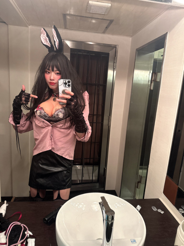 うさ耳にFカップのおっぱいを装着して準備完了