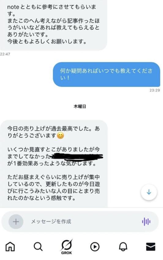 ご購入頂いた方からDM頂き1日の最高売上が出てnote代は速攻ペイしたそうです笑