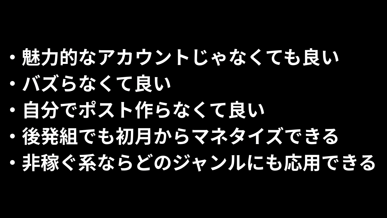 長く見ても1ヶ月あれば、男性目線のアカウントでも、女性目線のアカウントでもマネタイズできるようになりました。