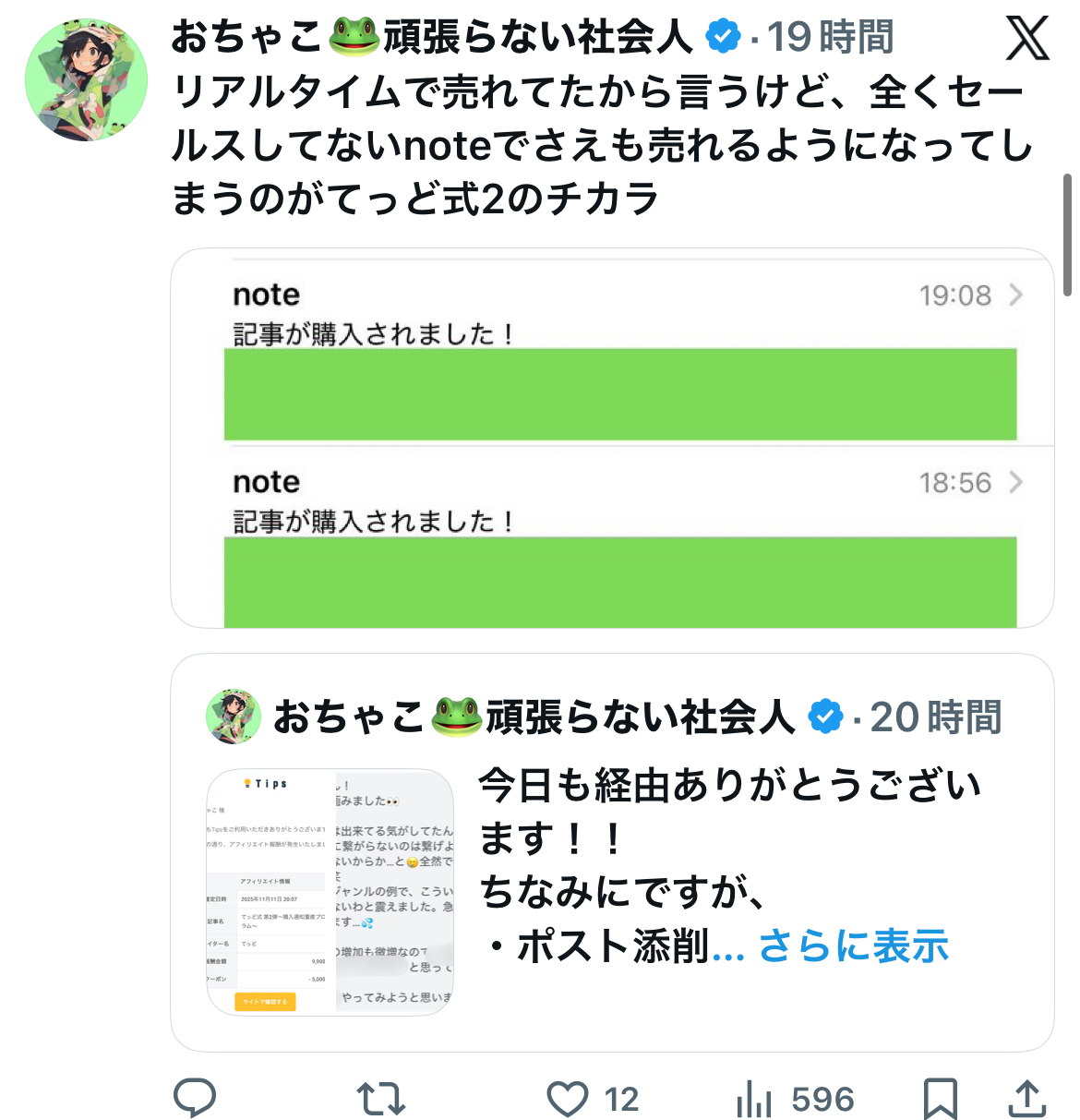 「その日から売上に影響する」くらい即効性のあるコンテンツに仕上げています。0→1すらできない層がほとんど、たまたま稼げたとしても消えていく人が多いこのnote界隈で、ビジネスを齧ったことも無いただのど素人が何年も継続して月数百万というお金を稼ぎ続けられている理由はこのコンテンツを読めば全て知ることができます。