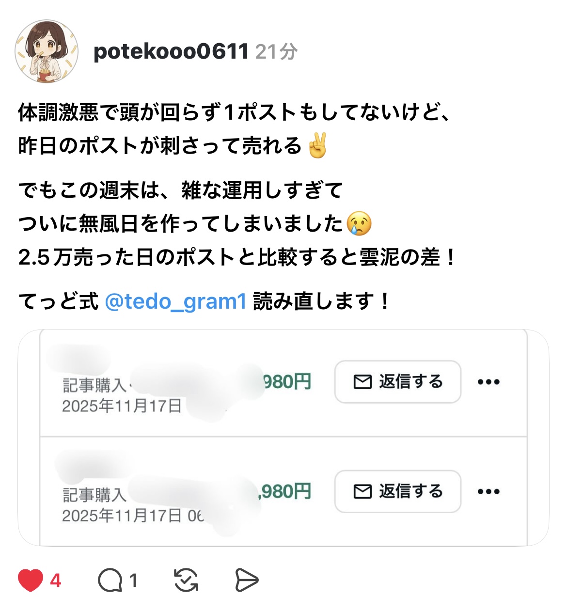 正直に言うと、これだけ押さえてれば「3日無風になることは基本ない」と言えるほど劇的に売れるポストを量産できるようになります。