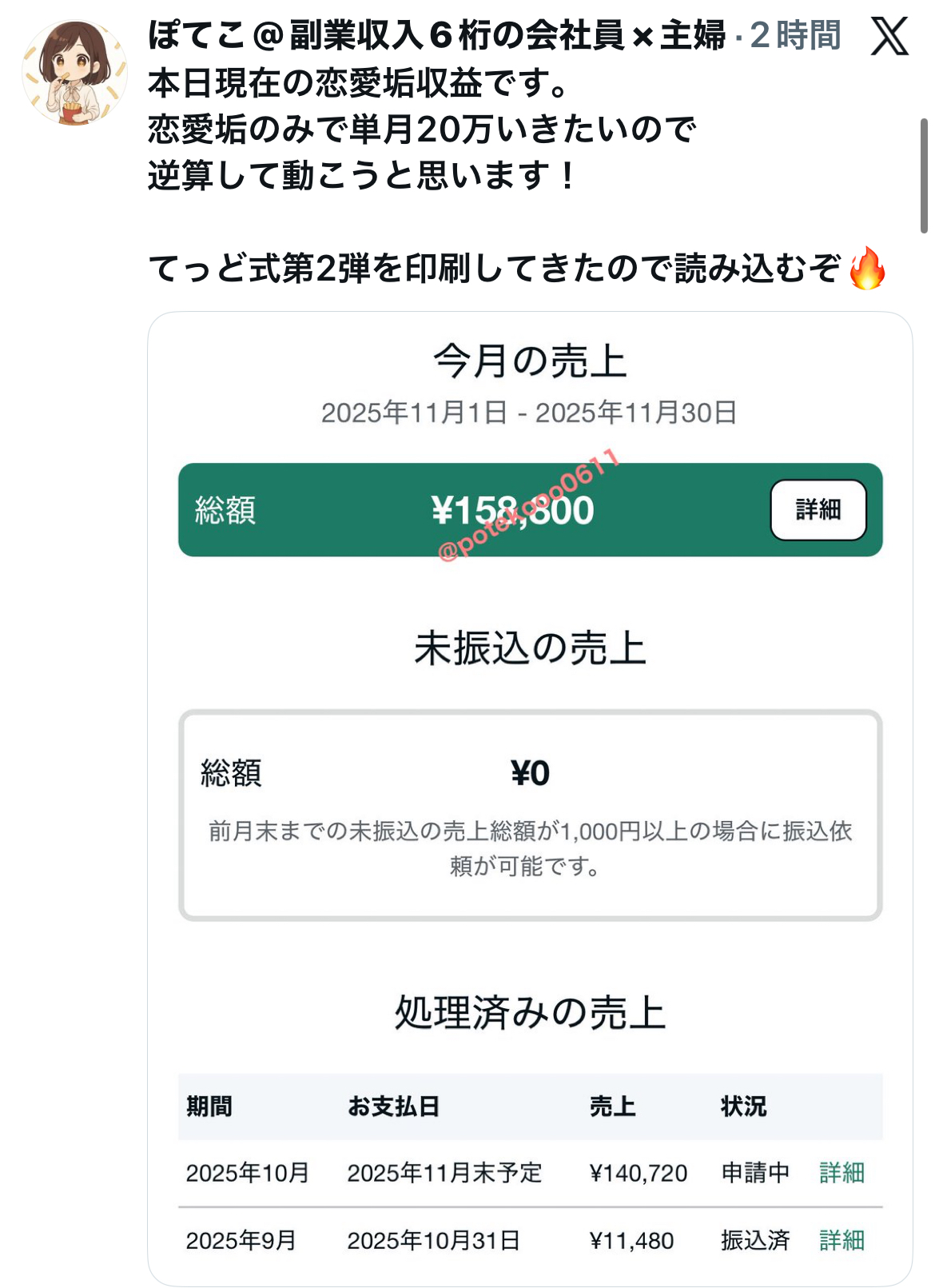 本気でこのコンテンツを作ったからこそ、本気で恋愛垢運用で副収入を築きたいと考えてる方のみに届いて欲しいです。