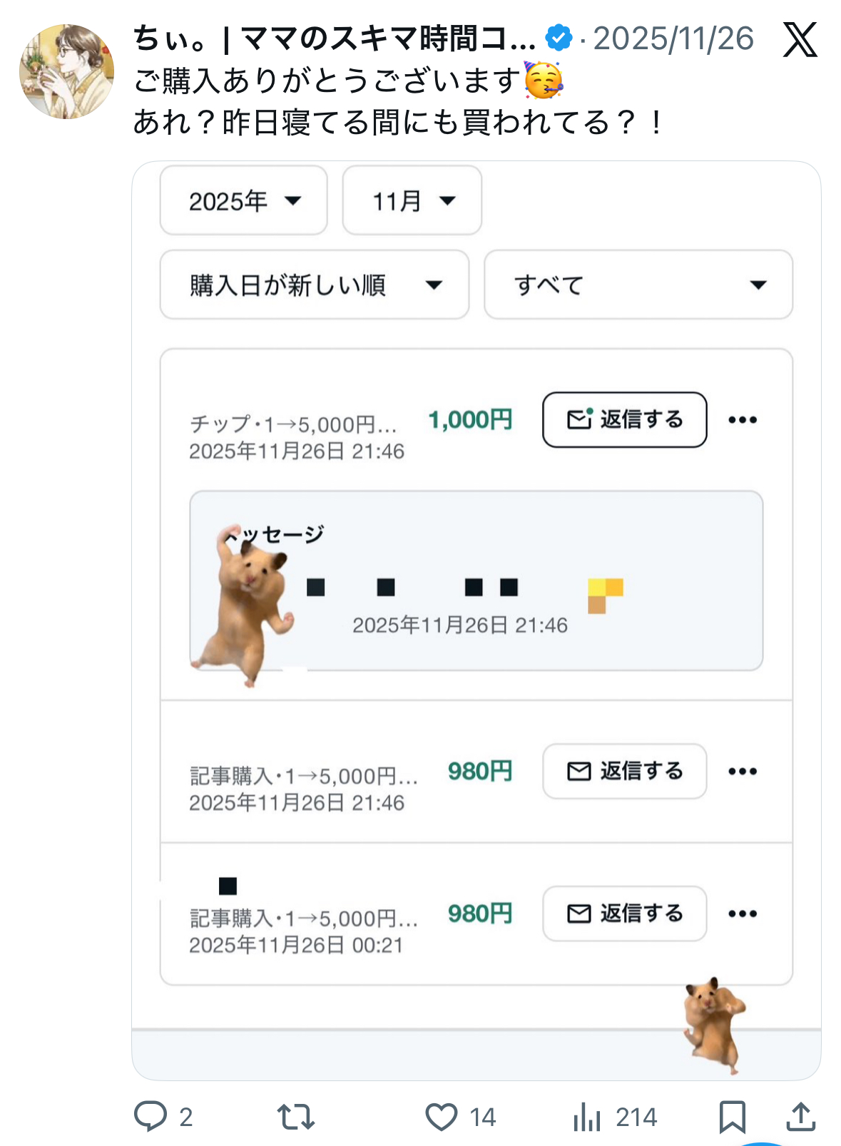 有料noteの売り上げです↓