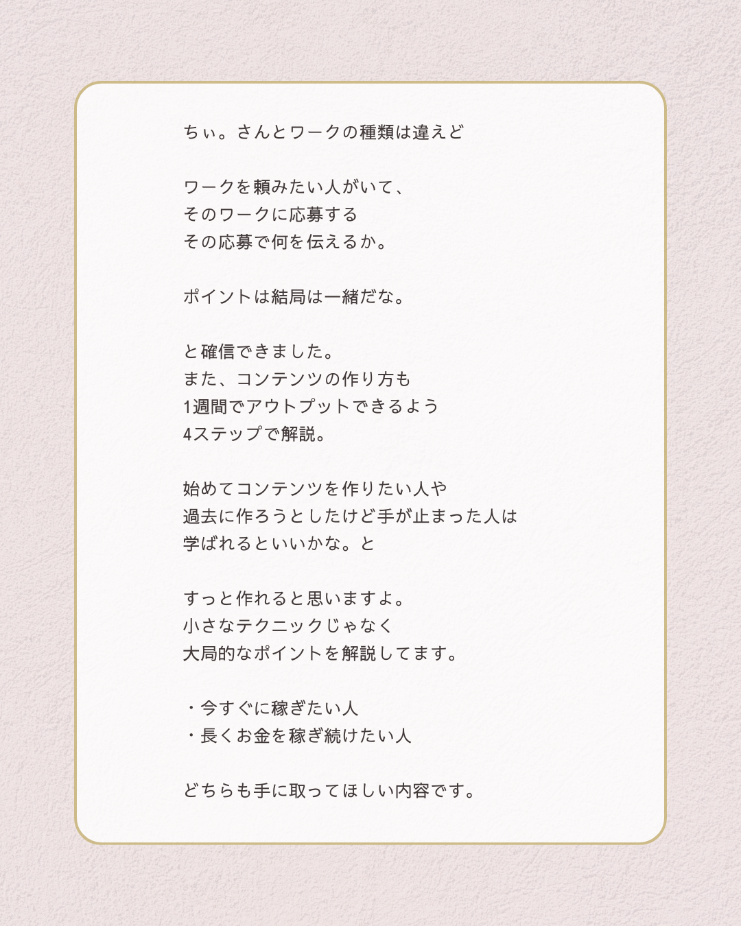 - 「稼げないかも」という不安に振り回されなくなりました