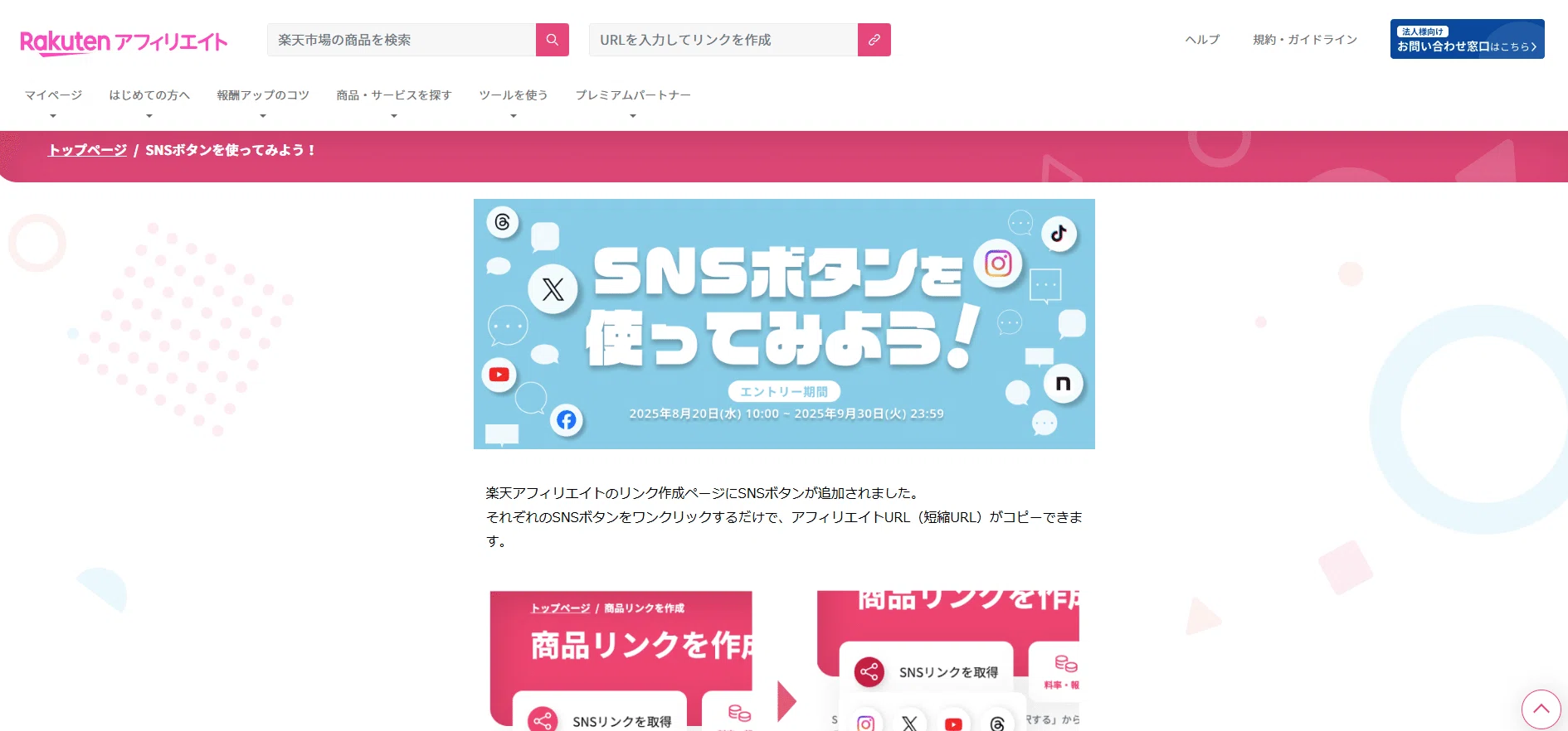 - 登録後は楽天市場のすべての商品でアフィリエイトリンクが作れます