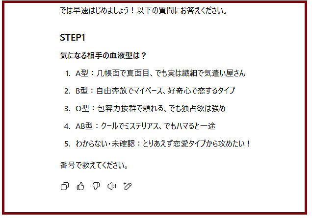 ◆血液型別・恋愛温度の育て方診断GPTs