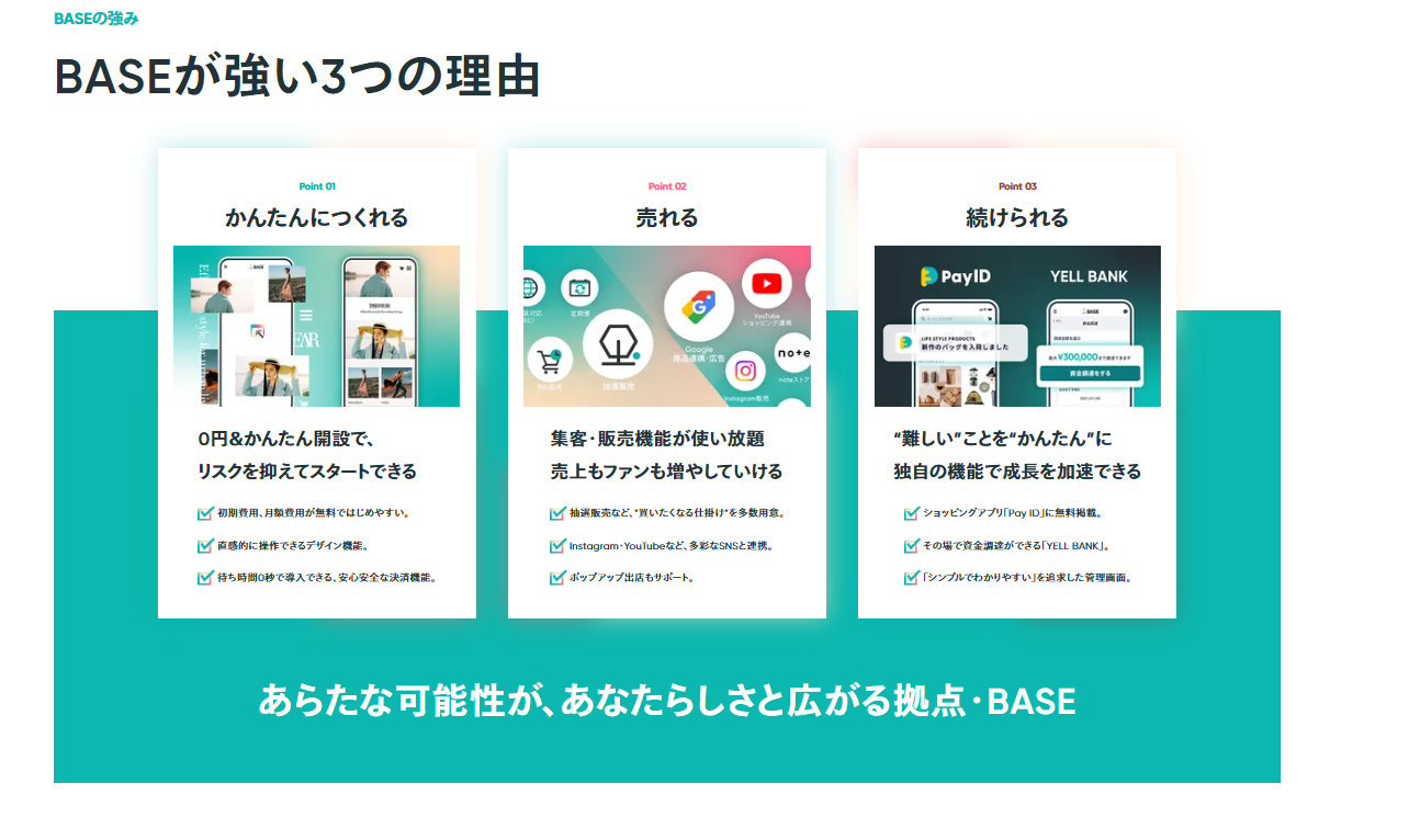 上記のような方にとって、BASEはおすすめの選択肢です。