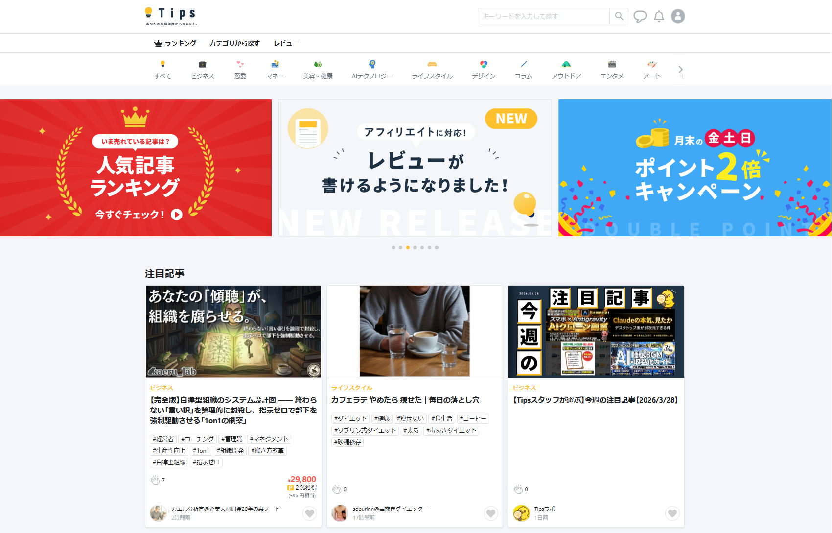 Tipsは無料で登録でき、クーポン・アフィリエイト・モニター機能など販促機能が最初から使えます。コンテンツが少ない段階でも、仕組みを作りながら販売実績を積み上げていけるため、初心者こそ使い始めるメリットが大きいプラットフォームです。