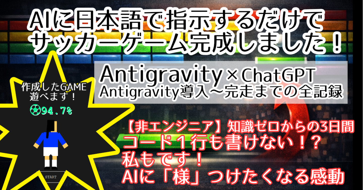 ④【非エンジニア】コード?一行も書けない私が、Antigravityで「遊べるゲーム」を3日で完成させた全記録《チャット内容・失敗談》