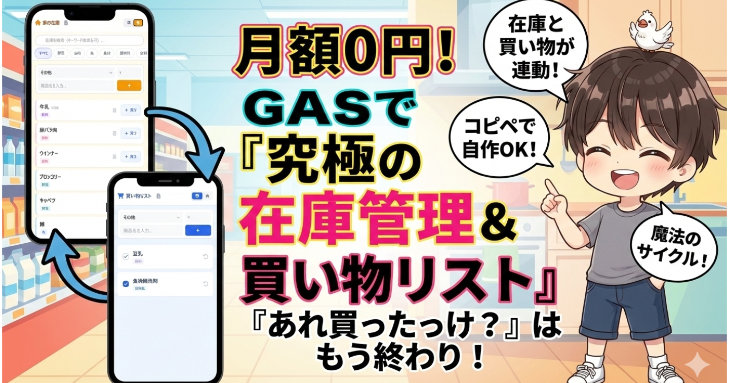 ⑤「あれ買ったっけ?」はもう終わり。スマホ一つで「在庫チェック」から「買い物」まで完結する、魔法のGASアプリ、公開します。
