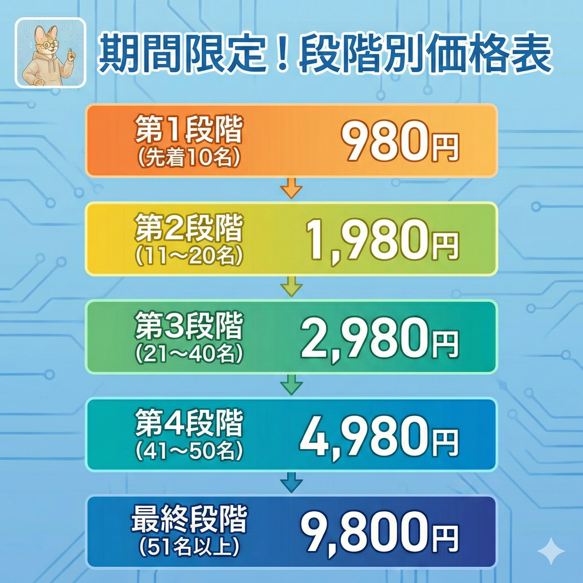 実は、この講座は販売数に応じて段階的に値上げをしていくシステムです。