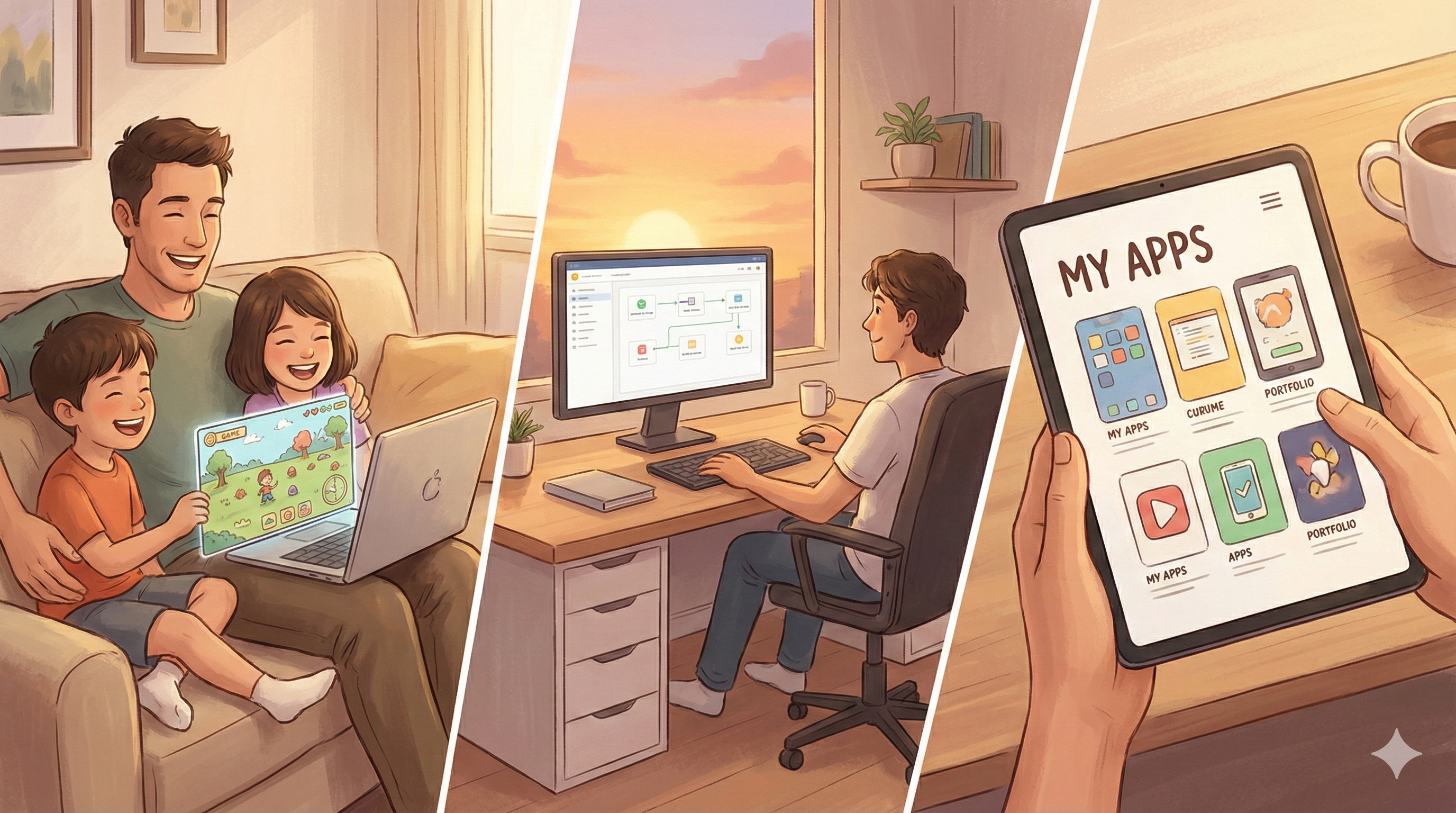 子供が「こんなゲーム作ろうよ!」と言ったアイデアが、その場でアプリになります。