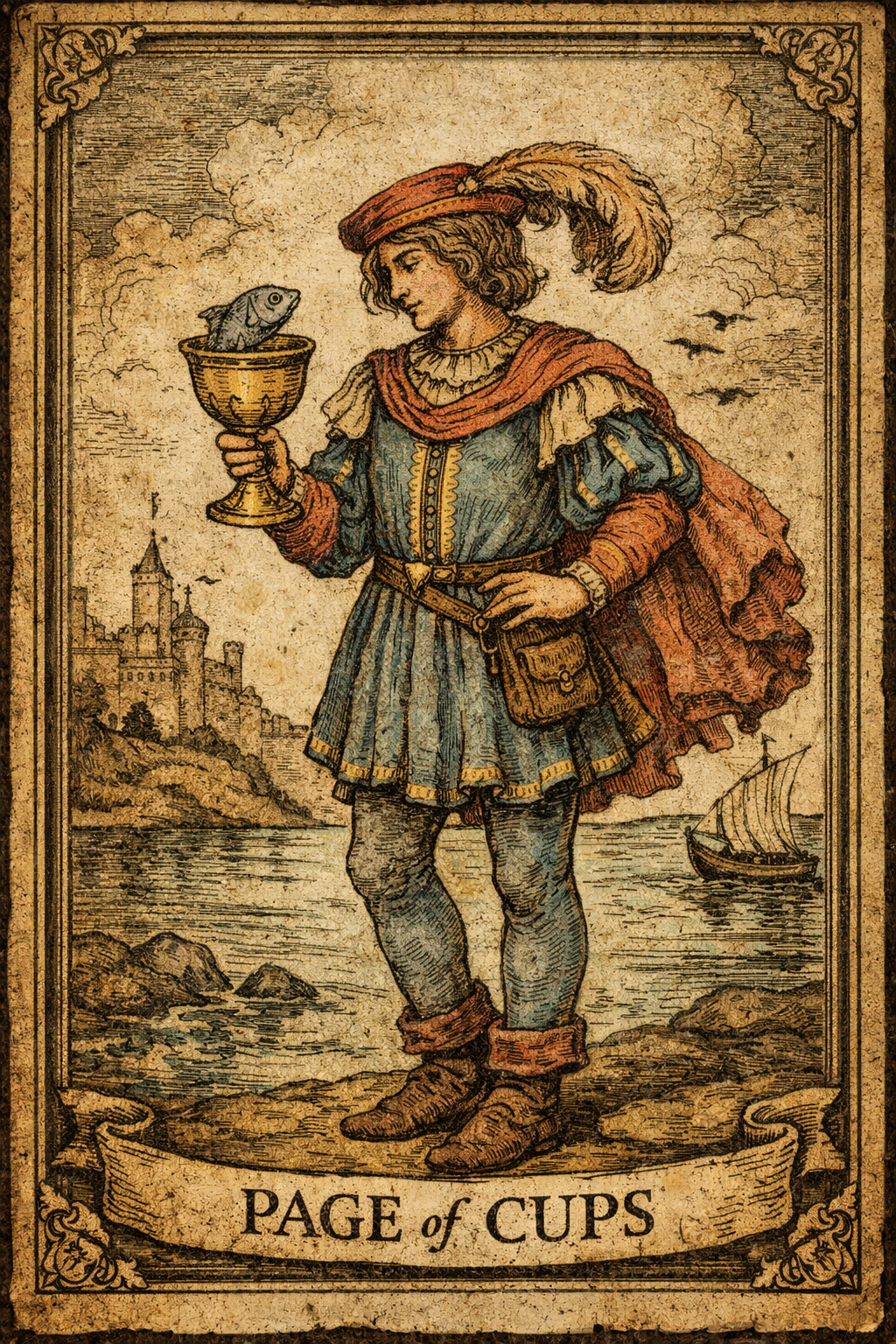 カップのペイジは、純粋な感情・優しさ・癒しの始まりを象徴するカードです。