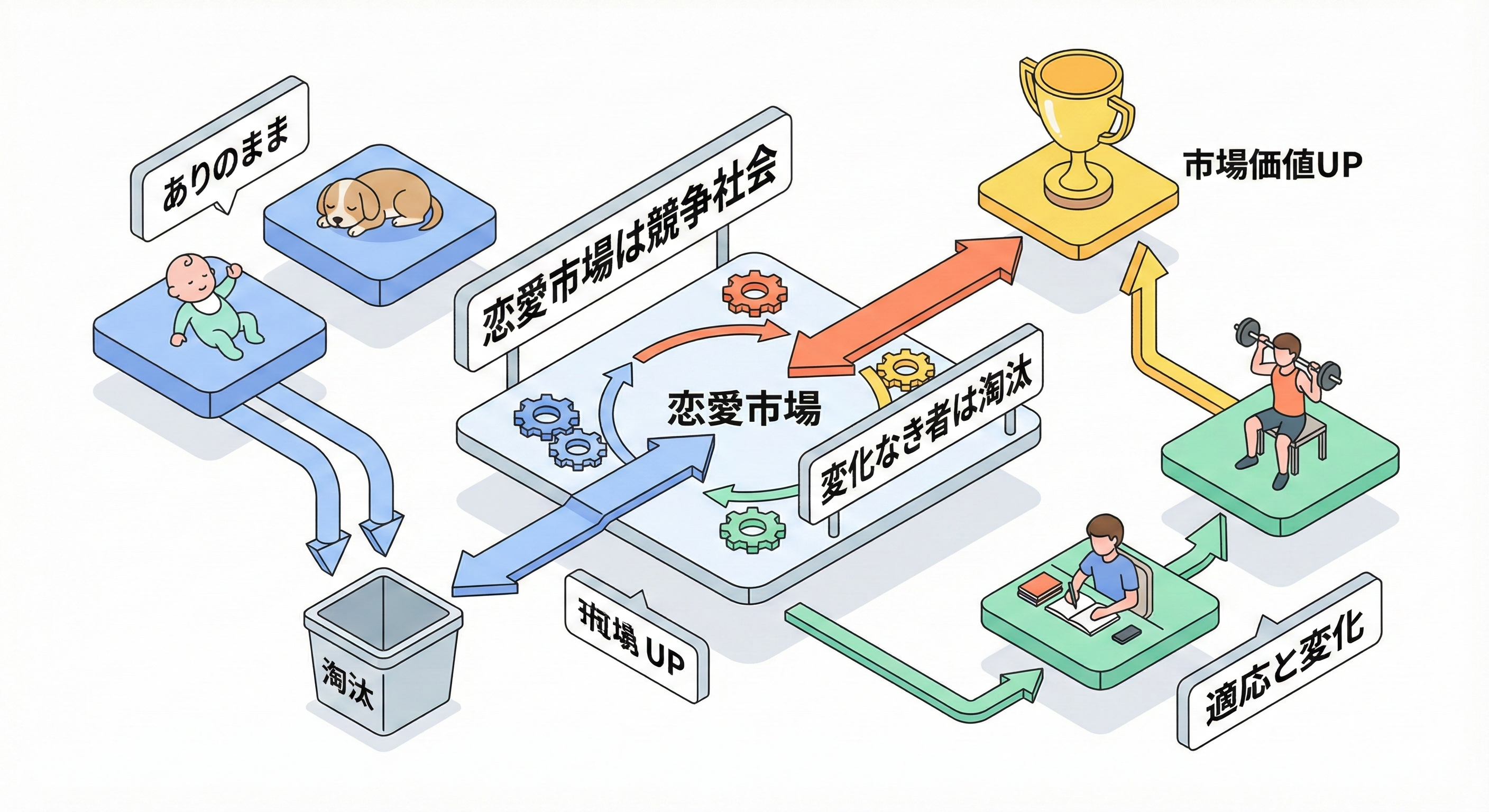 これは少し厳しい話になりますが、真実です。みなさんがこれから大人になって飛び込む恋愛の世界は、実はとても冷徹な「競争社会」なのです。そこには、明確な勝ち負けのルールが存在します。