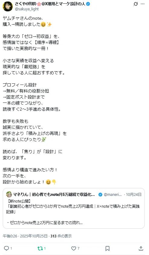 すると少しずつ、Xで信頼が積み重なり、「努力がちゃんと形になる」瞬間を感じられるようになりました。