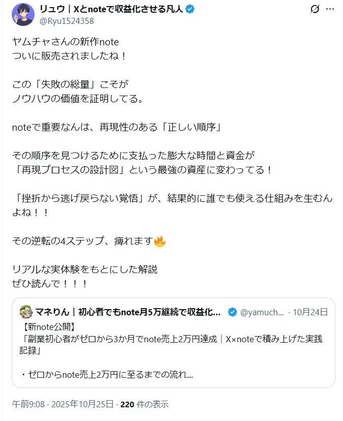 少しずつではありますが、数字としても成果が積み上がってきています。これまで読まれなかったnoteも、Xで信頼を積み重ねることで、少しずつ届くようになりました。