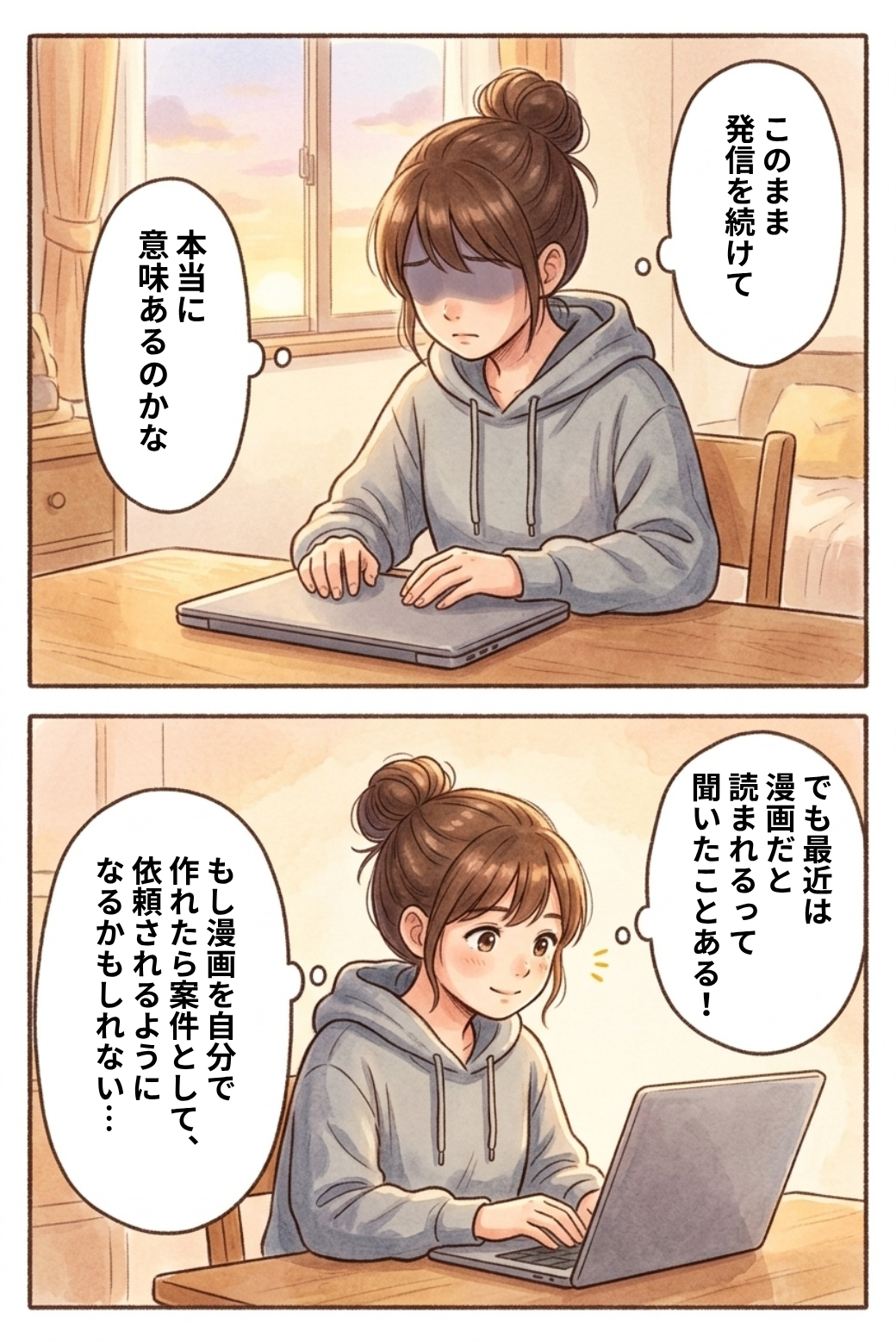 発信者としてずっと"伝わりやすさ"を日々試行錯誤していますが、文章を読んでもらうって想像以上に難しいんですよね。最近、フォロワーさんがわたしと出会ってから収益化するまでを漫画にしてくれる機会が多くて…。