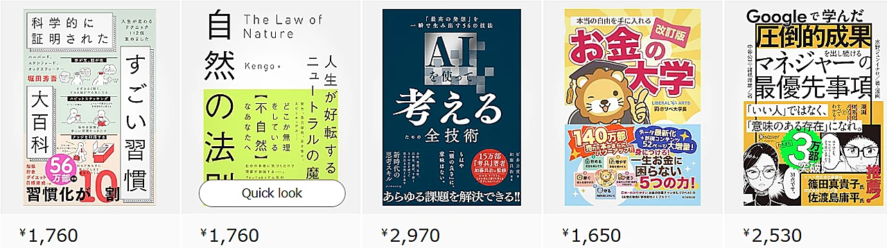 市販のビジネス本1冊の平均的な値段は、1,980円です。