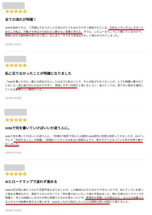 別のプラットフォームで当教材を販売したところ…販売開始からわずか2日で高評価のコメントを複数いただいています。