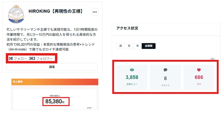 ・フォロワー363人、累計3,858PV超