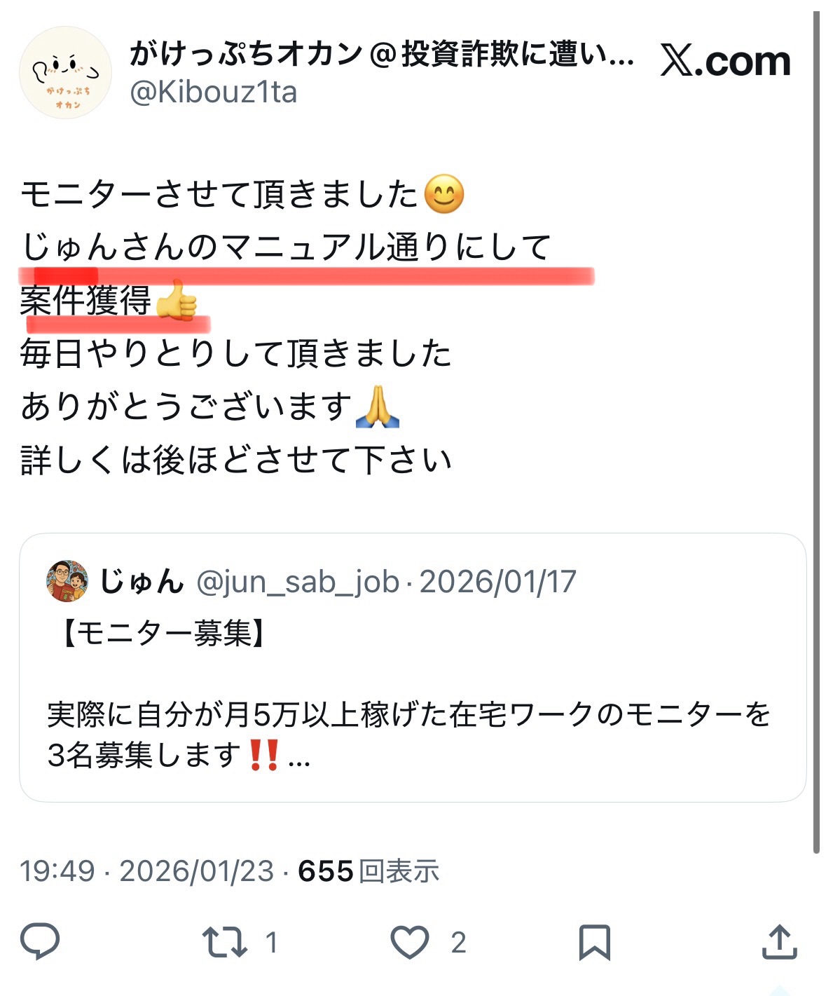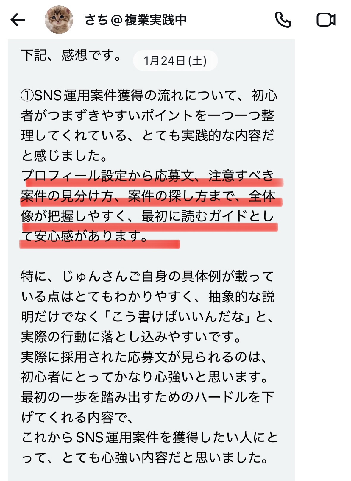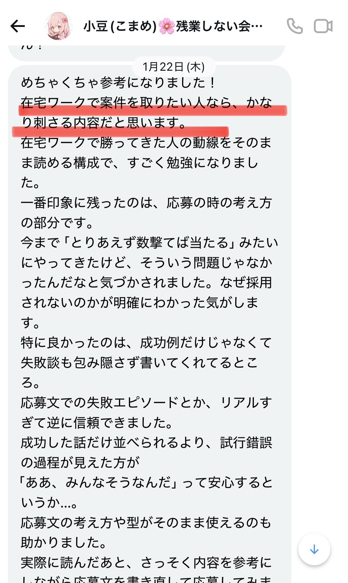 モニターをして頂いた方からはこんな報告を頂いており、実際に案件を獲得された方もいます。