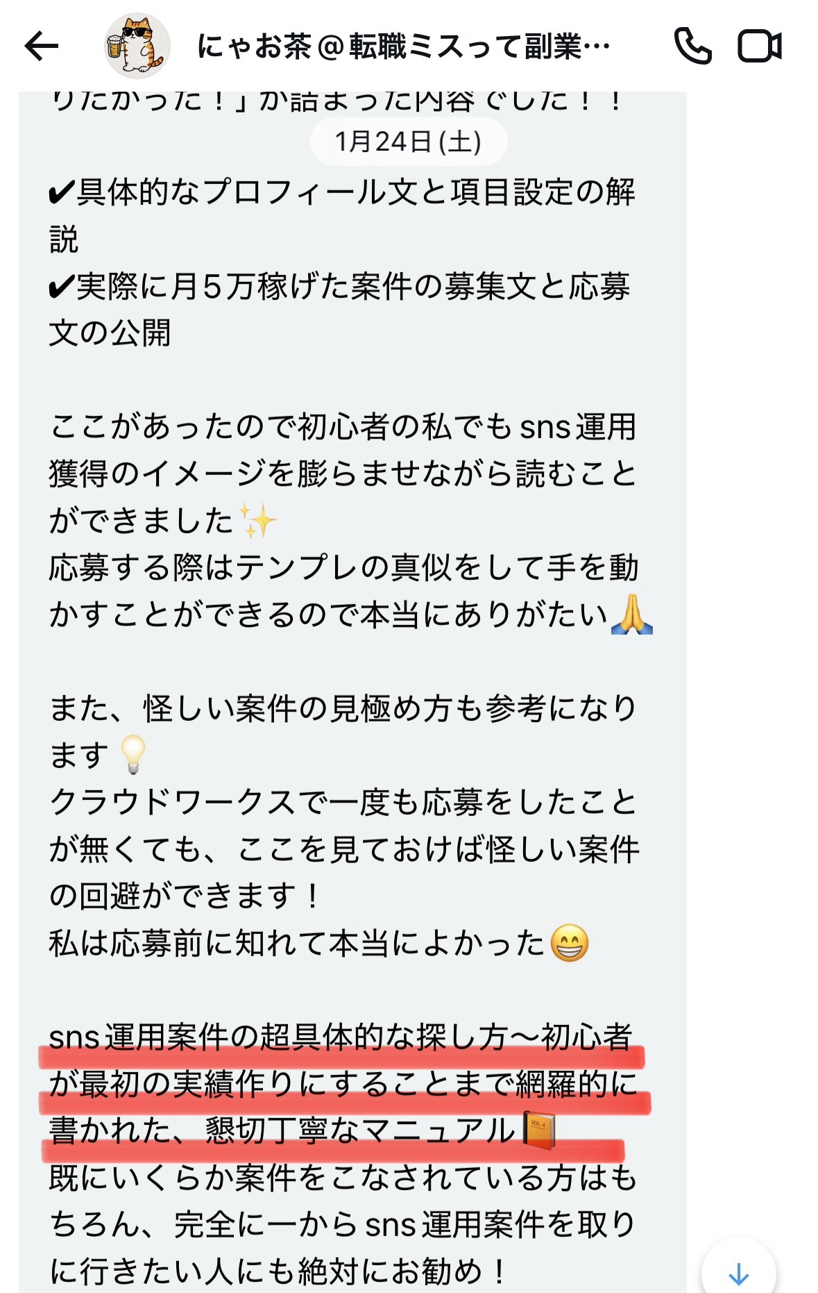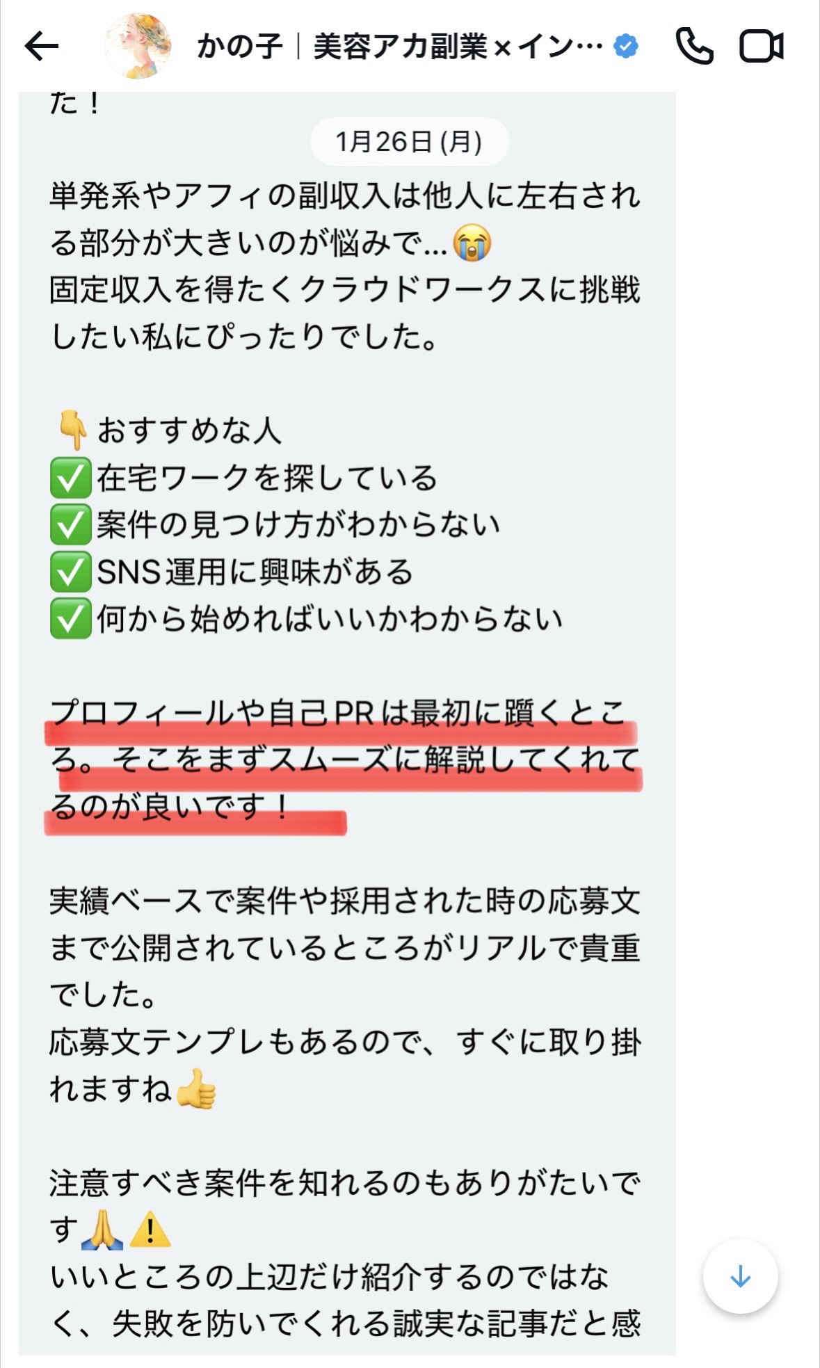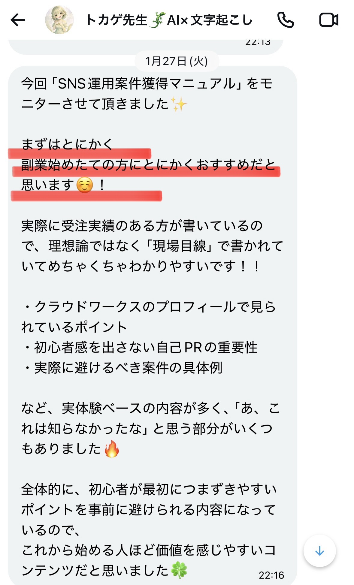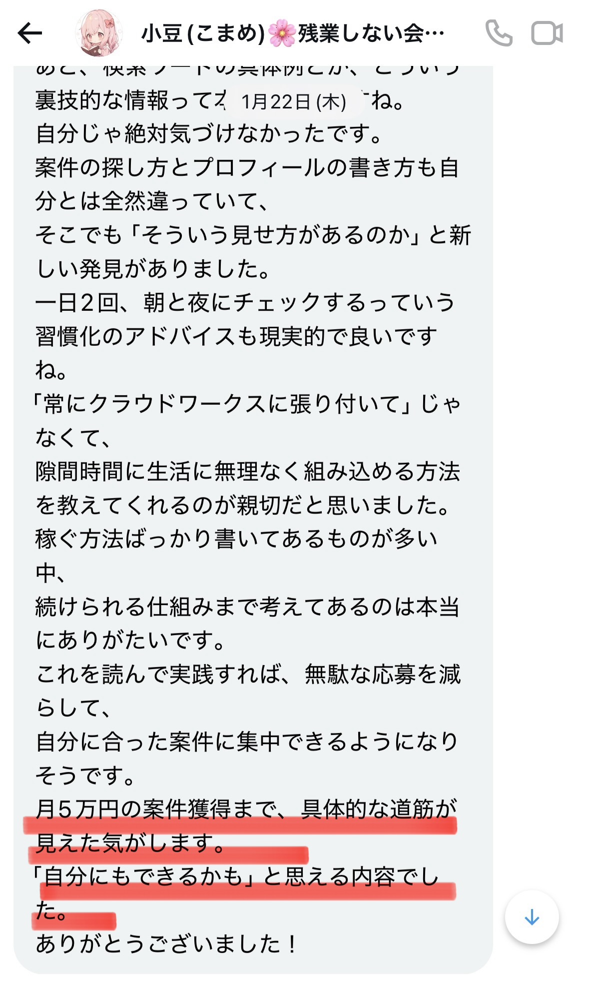 モニターをして頂いた方からはこんな報告を頂いており、実際に案件を獲得された方もいます。