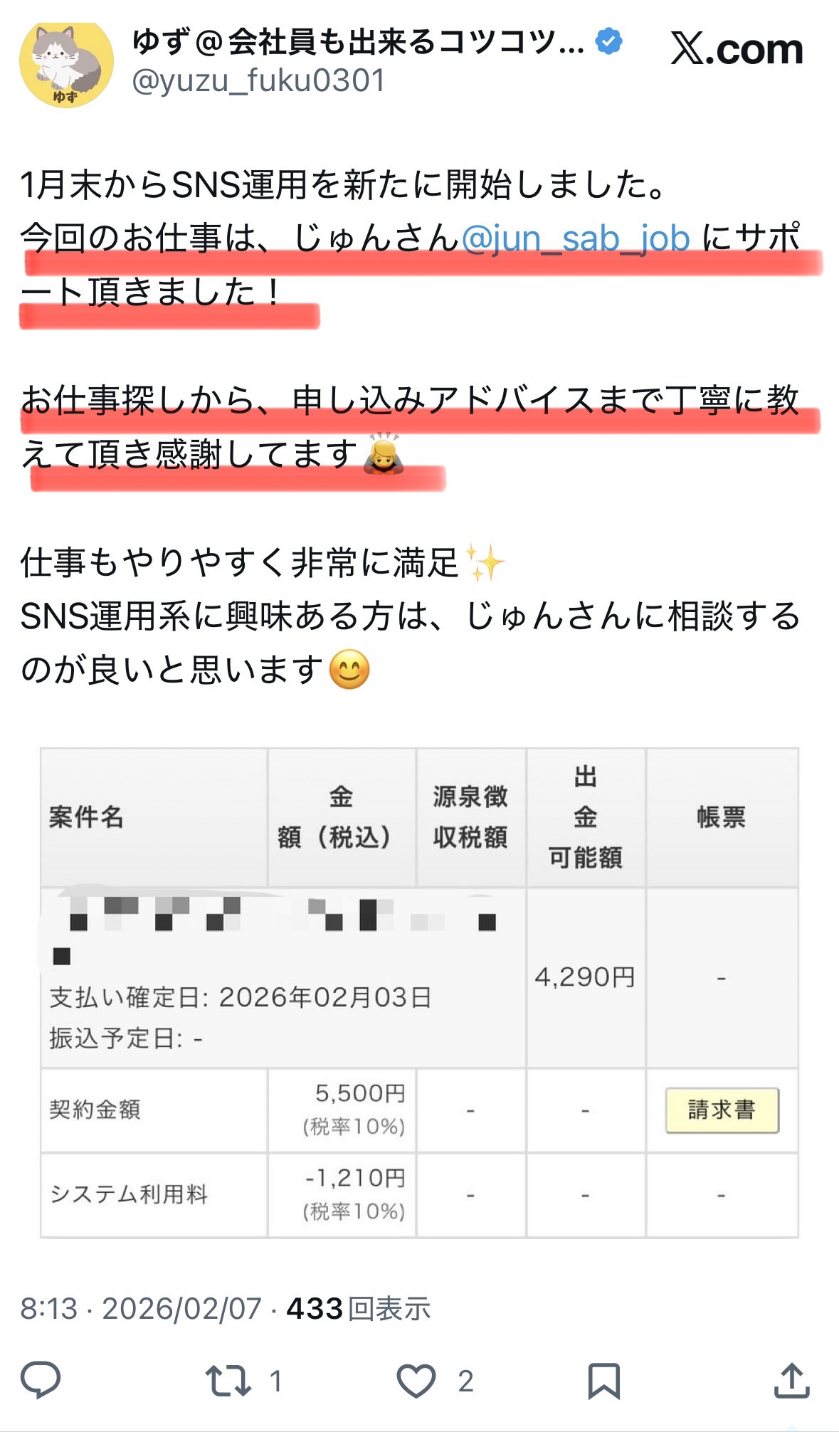 Xのアカウント (https://x.com/jun_sab_job?s=21)