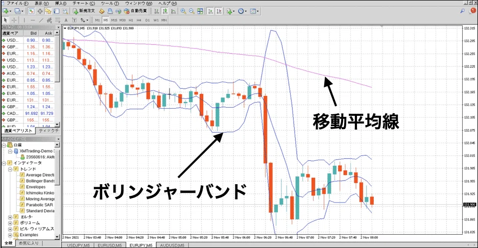 やり方をざっくり説明すると、MT4でインジケータを2つ設定し、
