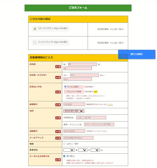 あなたの氏名や支払方法、住所、電話番号、メールアドレスなどを入力していきます。