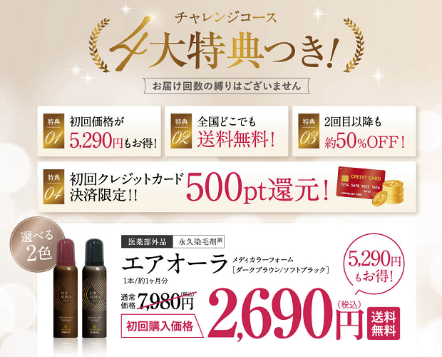 エアオーラ(AIRAURA)メディカラーフォームは医薬部外品の永久染毛剤です。