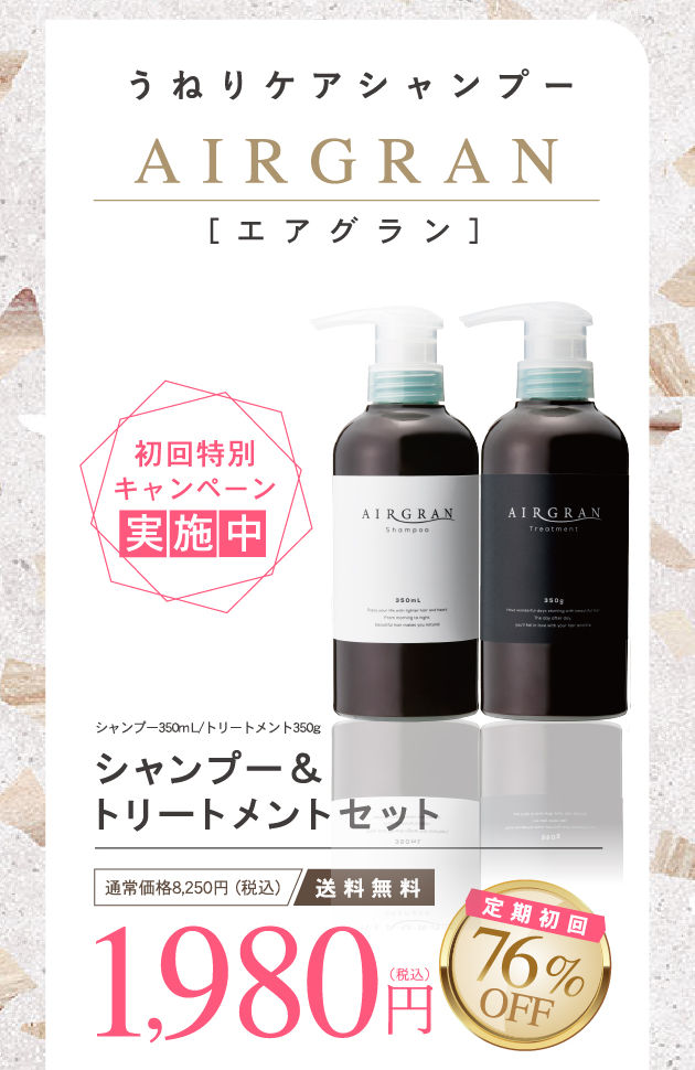 エアグラン(AIRGRAN)は気になるうねり対策のために誕生したシャンプーです。