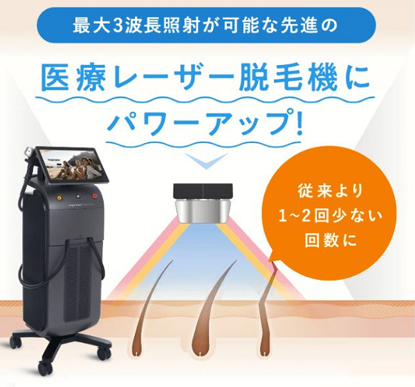 また、最新の脱毛機を導入していて、最大3波長の照射が可能です。