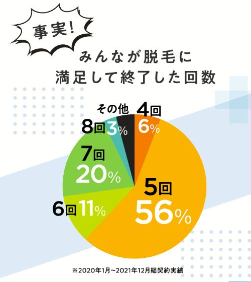 大半のクリニックでは5回コースが主流になっていますが、正直5回で脱毛が完了する割合は全体の56%程度です。