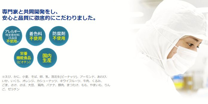 着色料や防腐剤、アレルギー特定原材料28品目も排除していて、誰でも安心して摂取することができます。