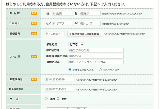 あなたの氏名や住所、電話番号、メールアドレス、パスワードなどを入力していきます。