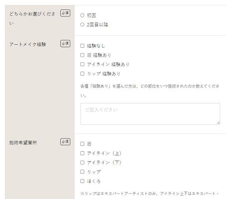 眉やアイライン、リップ、ほくろなどが施術対象部位になっています。