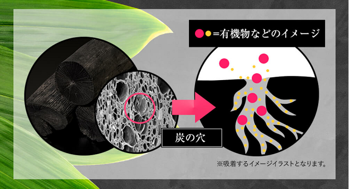 この広大な活性炭が有機物をしっかりとキャッチしてくれます。