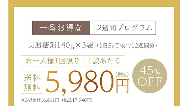 12週間プログラムは3袋セットになっていて、合計17,940円(税込)・送料無料で申し込めます。
