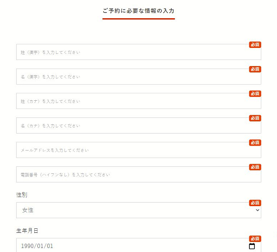 あなたの氏名やメールアドレス、電話番号、性別、生年月日などを入力します。