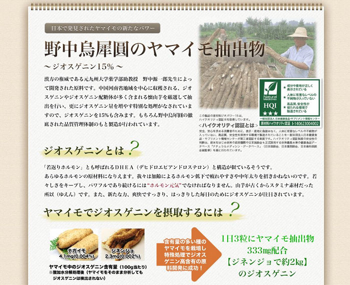 『若返りホルモン』と呼ばれているDHEAと構造が似ているジオスゲニンが高配合されています。
