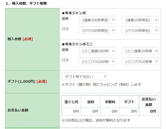 購入可能枚数は10枚~1,000枚まで(10毎単位)で申し込めます。