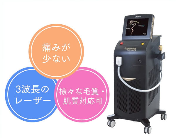 また、3種類の異なるレーザー(アレキサンドライト、ダイオード、ヤグ)を同時に出力できます。