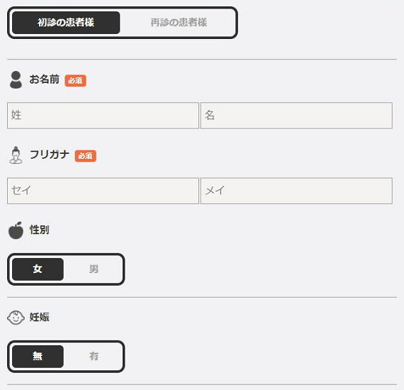 申し込みフォーム画面に移動するので、あなたの氏名や性別、生年月日、電話番号、メールアドレス、診察希望日時などを入力していきます。