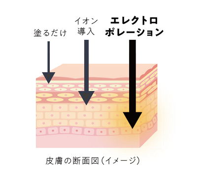エレクトロポーションとは、電気の力を利用して美容成分を肌の奥まで浸透させる技術のことです。