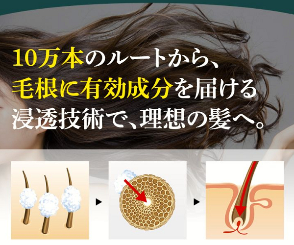 頭皮だけでなく、髪の芯から毛根にも有効成分を届けることが可能になりました。