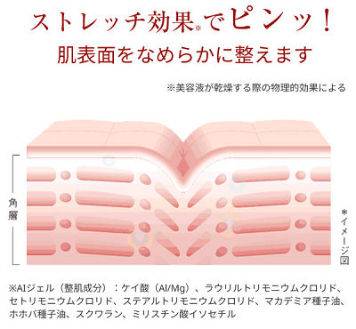 ストレッチ効果によって、肌の表面をなめらかに整える効果が期待できます。