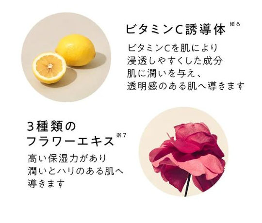 ビタミンC誘導体や3種類のフラワーエキスが配合されています。