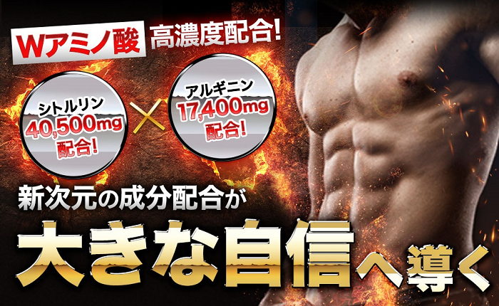 特にアミノ酸の含有量にこだわっていて、1箱あたりシトルリンを40,500mg、アルギニンを17,400mgも詰め込んでいます。