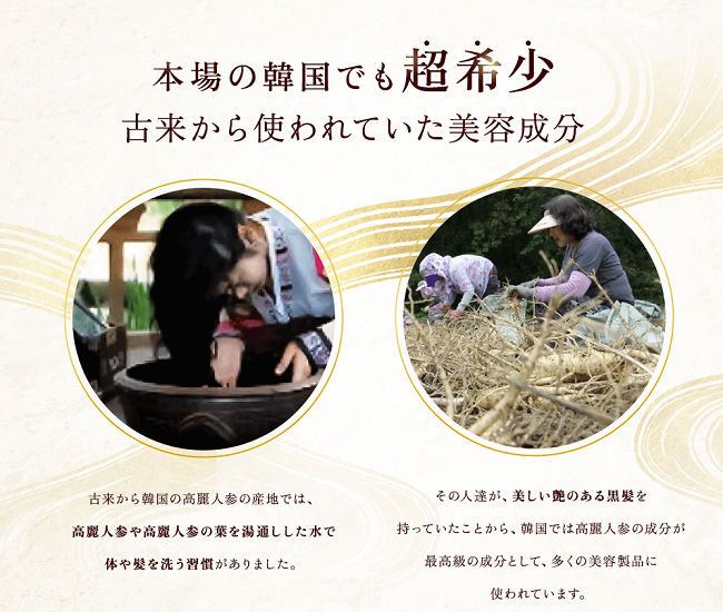 美しい髪を実現する高麗人参から0.06%しか採取できない希少性の高い成分です。
